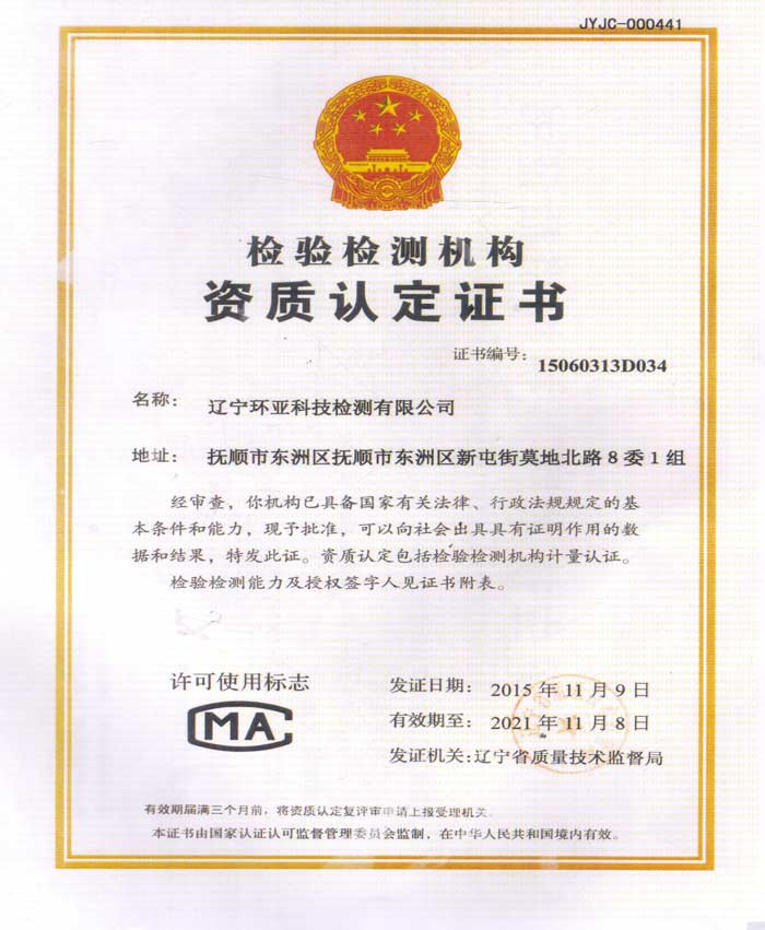 檢驗檢測機構資質(zhì)認定證書